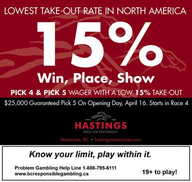 When it comes to Canadian tracks, kudos go out to Hastings. If they can just get their field sizes up, I believe we would see handle sky rocket. Yeah, field size is very important too.